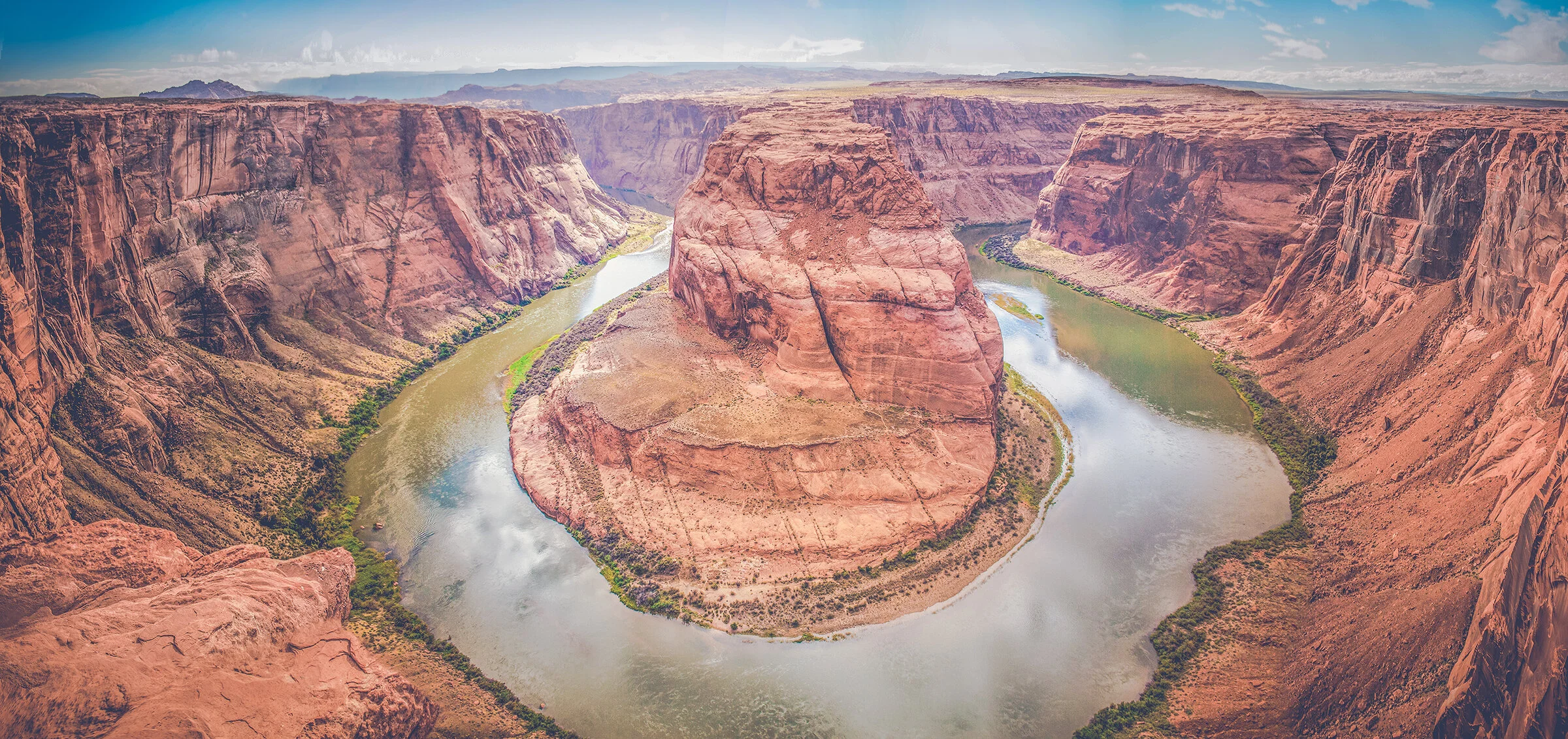 Le lendemain nous avons voulu aller à Antelope Canyon mais malheureusement le site était fermé à cause de risque d'innondations car des pluies étaient prévues. On s'est donc consolés avec la visite très proche du Horse Shoe Bend, qui est une sinuosité très prononcée du fleuve Colorado situé à 6 km au sud de la ville de Page en Arizona et correspondant à un ancien plateau érodé. Quelle vue et quel pied d'être là avec finalement un ciel magnifique !