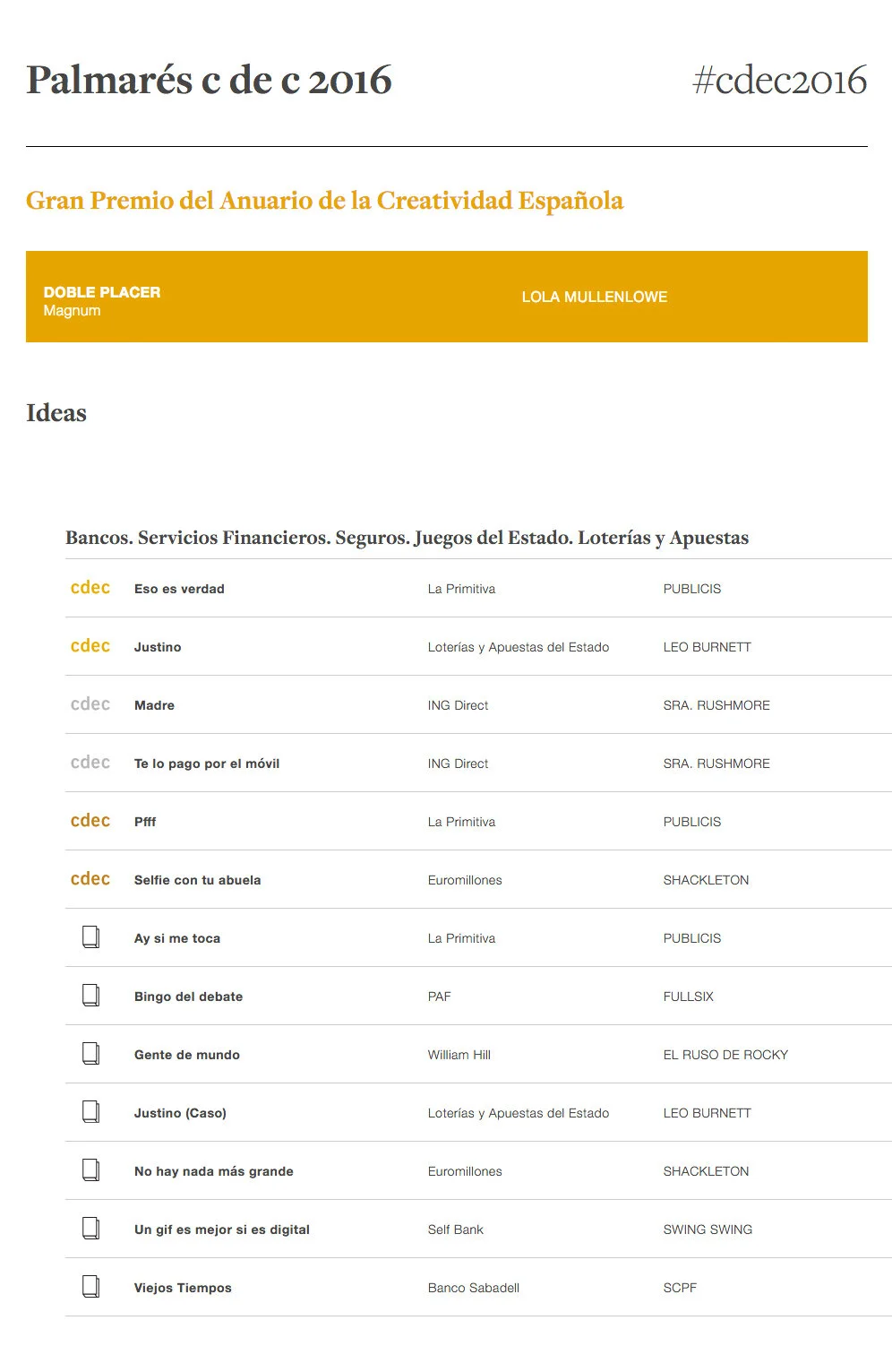 Je suis très heureux de vous informer que mon film Nothing Bigger pour la campagne Euromillions Espagne vient de remporter un prix en bronze au Club de Creativos de España 2016 ! Un grand merci à la production Dr. Troy et mon producteur Santiago Morali, à Eva Garcia-Cuadrado à l'agence Shackleton Madrid et le directeur de création Juan Nonzioli qui ont rendu ce projet possible.