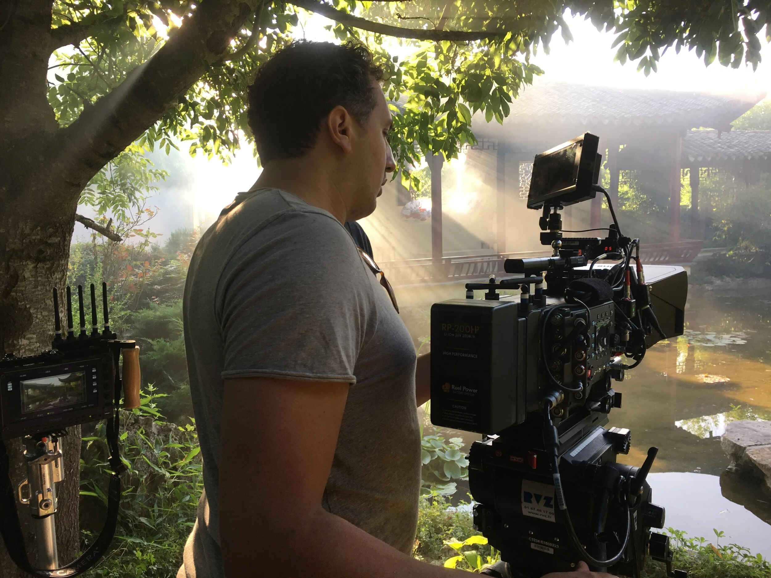 Voici quelques images mon set préféré sur ce tournage. Pour l'anecdote nous ne sommes pas partis en Chine pour le tourner, nous sommes bel et bien restés en Ile de France. Sur la seconde photo, Mahdi Lepart manipulant l'Alexa LF sur ce même set :