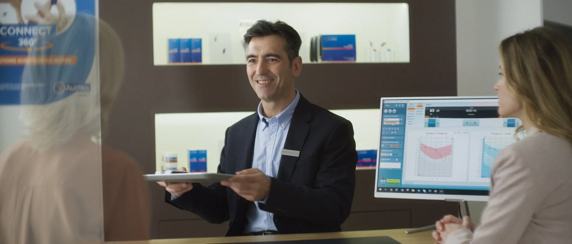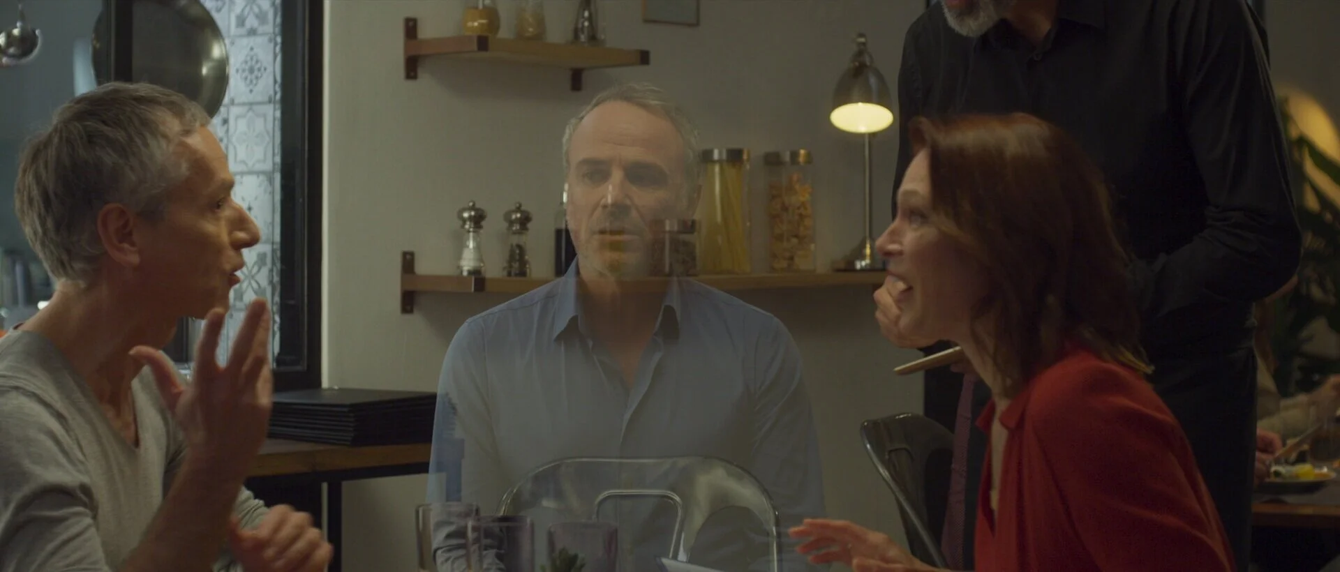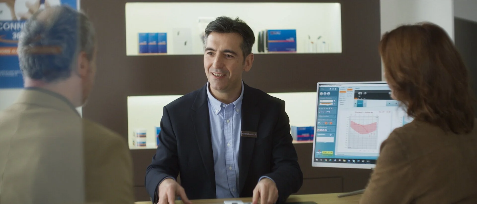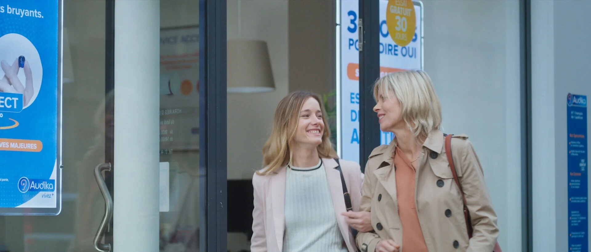 L'idée était aussi de montrer deux situations de vie différentes. Sur le premier film on est en famille. La femme jouée par Andréa Noelle est mal à l'aise car elle n'entend pas sa fille (Justine Thibaudat) et son gendre évoquer avec leurs enfants leurs prochaines vacances. Tandis que sur le second film on est dans un restaurant en soirée et l'homme joué par Olivier Neveux n'arrive pas à entendre sa femme (Marie Legault) et son meilleur ami qui se moquent de lui. Ces deux situations sont typiques des problèmes des personnes malentendantes, c'est quelque chose de très commun que souvent elles ont du mal à s'avouer... C'est pour cela que je tenais aussi à les voir prendre rendez-vous dans la séquence chez Audika en couple pour leur donner du courage. En quelques petites situations j'ai essayé de transmettre le maximum de petites émotions dans des situations de la vie de tous les jours.