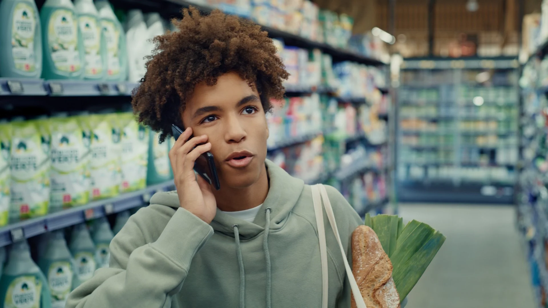 Cette fois-ci, on découvre le papa au téléphone avec son premier fils, Max, un ado d’une quinzaine d’années, interprété par Ziyad Clombe. J’ai adapté la mise en scène du premier film qui était plus onirique et enfantine pour adopter un ton plus “ado” en phase avec ce nouveau personnage. Max fait lui même les courses au supermarché, mais il a besoin d’un petit coup de main et appelle son père pour bien choisir la lessive…